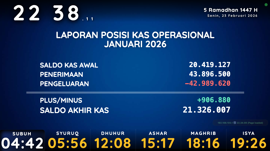TV Anda kini sudah menampilkan sistem display masjid secara real-time.