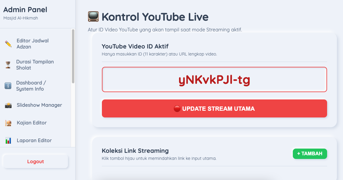 Jangan ragu untuk bertanya seputar instalasi atau cara penggunaan sistem ini di lingkungan masjid Anda.